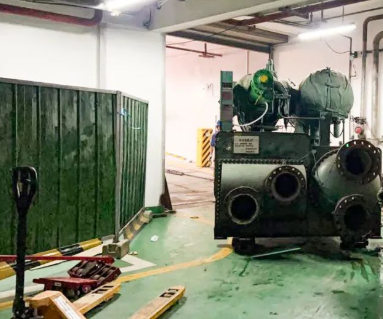 到舊設(shè)備移出,新機(jī)組進(jìn)場(chǎng)階段后,現(xiàn)場(chǎng)面對(duì)車(chē)庫(kù)高度不夠,大廈停車(chē)場(chǎng)空間受限,裝運(yùn)車(chē)輛太長(zhǎng)不能進(jìn)入停車(chē)場(chǎng)等難題,通宵施工,見(jiàn)招拆招。